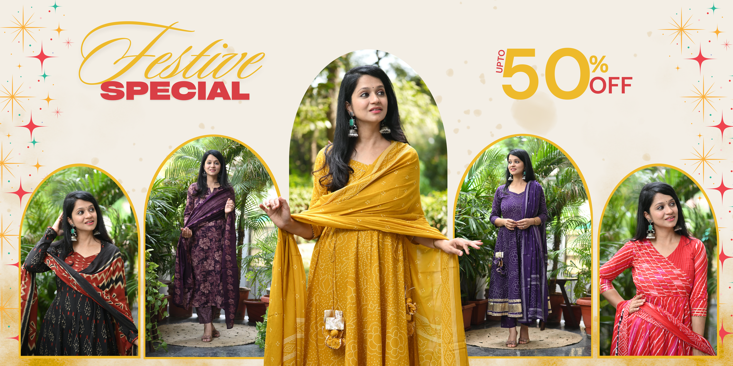 Plum Alia Anarkali Handblock Cotton Suit Set