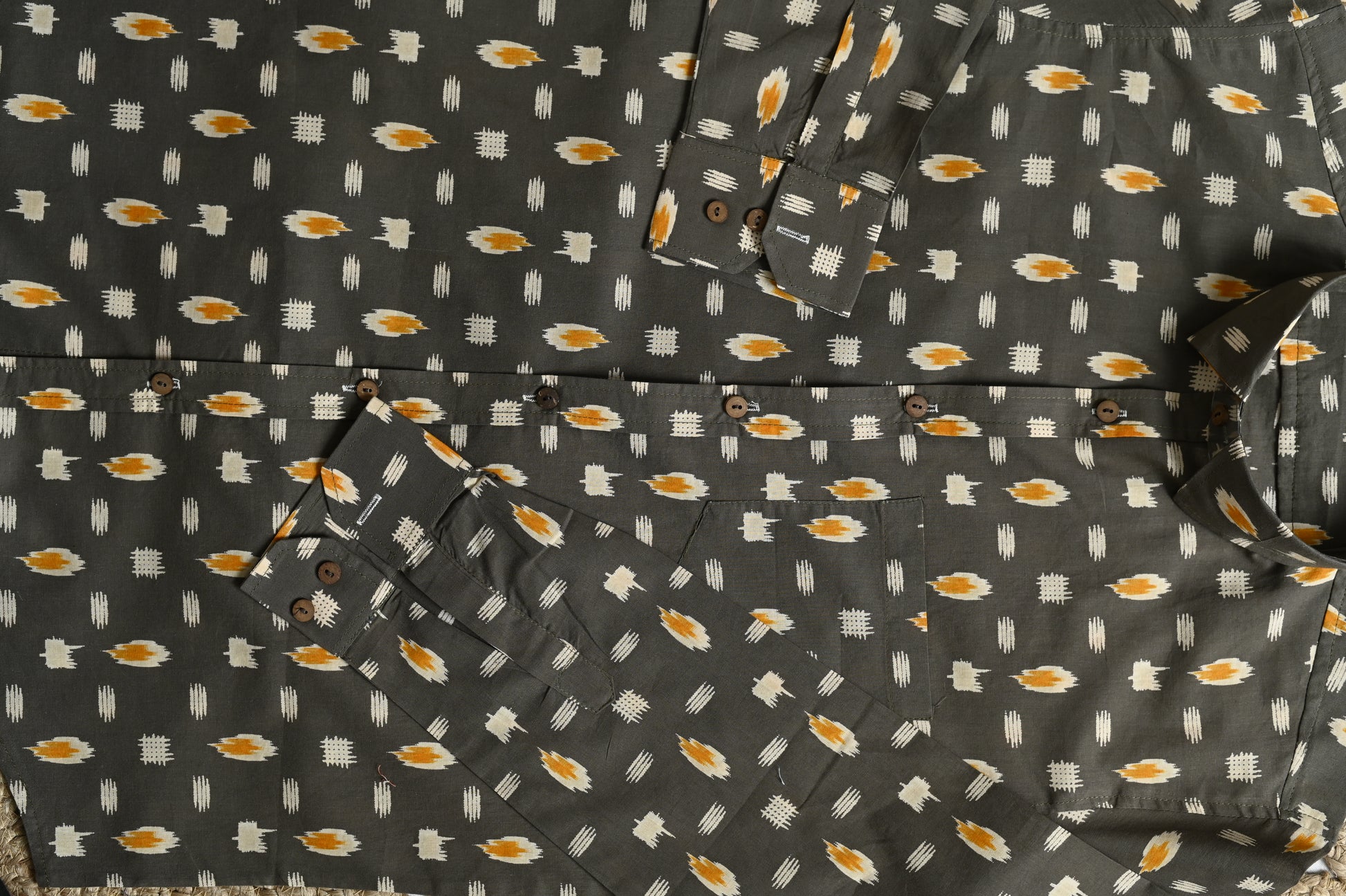 Natural-dyed colours might bleed during the first few washes or rub against the skin & other light-coloured garments. In the artful process of hand block-printing, embroidery work and stitching, variations are likely to come into existence. These irregularities are the hallmark of all handmade products and give each style a unique identity.