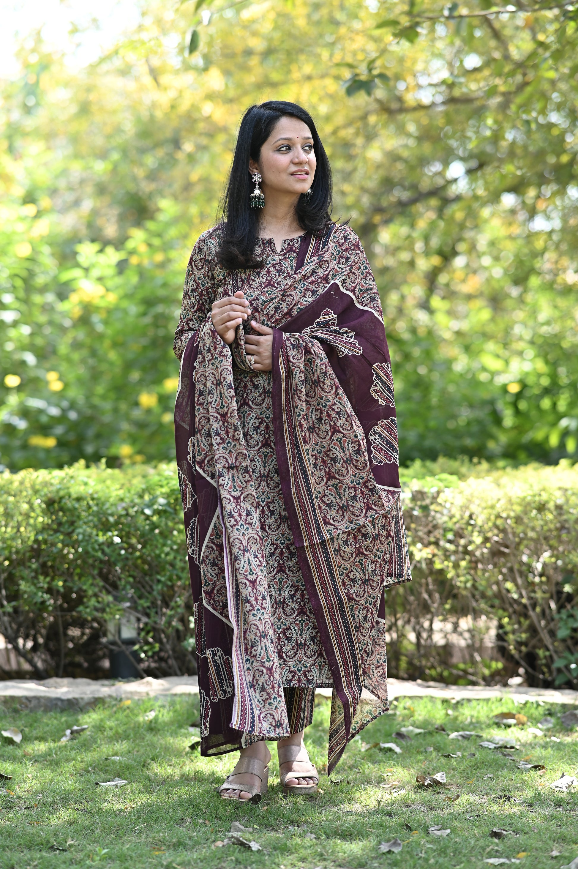 Natural-dyed colours might bleed during the first few washes or rub against the skin & other light-coloured garments. In the artful process of hand block-printing, embroidery work and stitching, variations are likely to come into existence. These irregularities are the hallmark of all handmade products and give each style a unique identity.