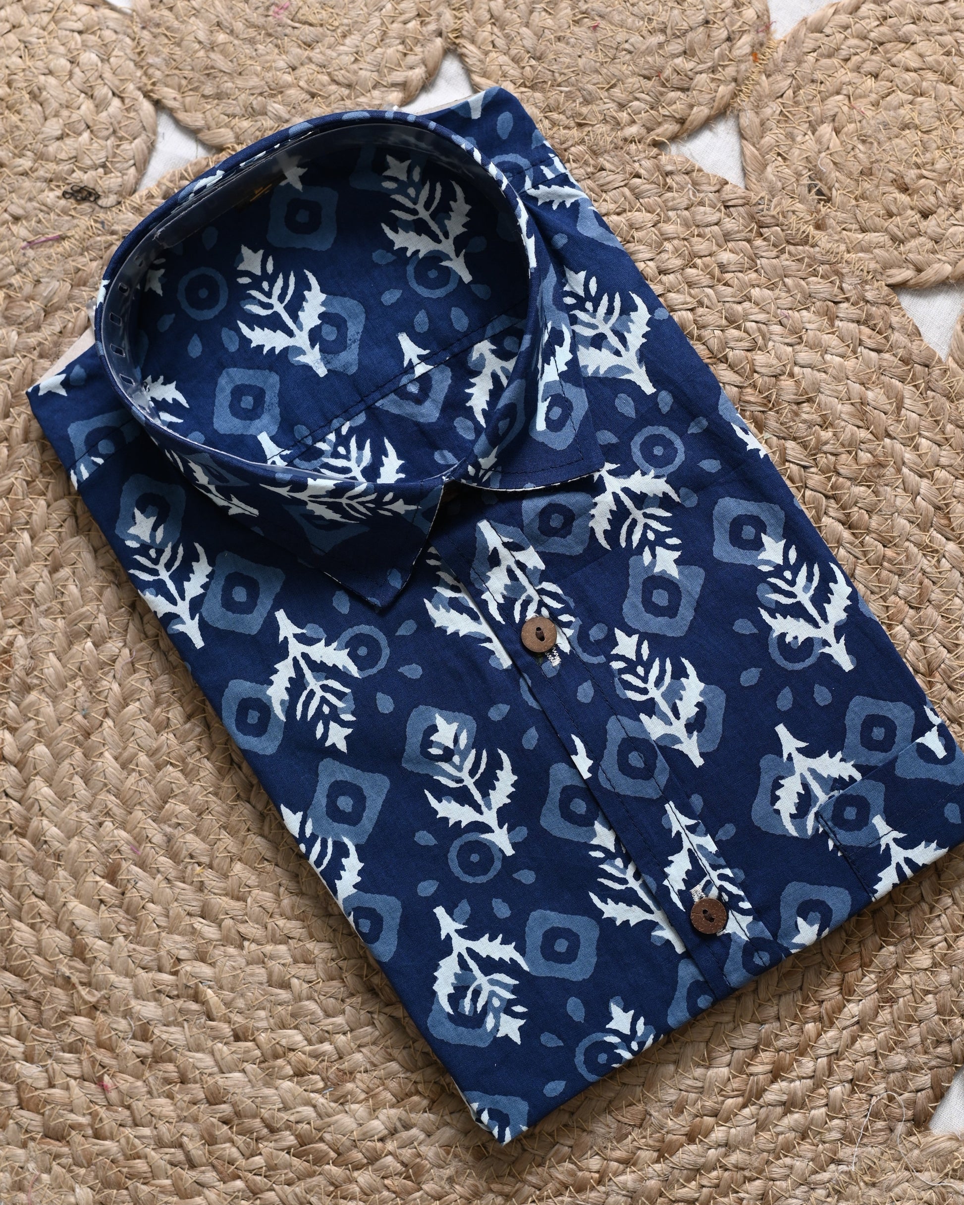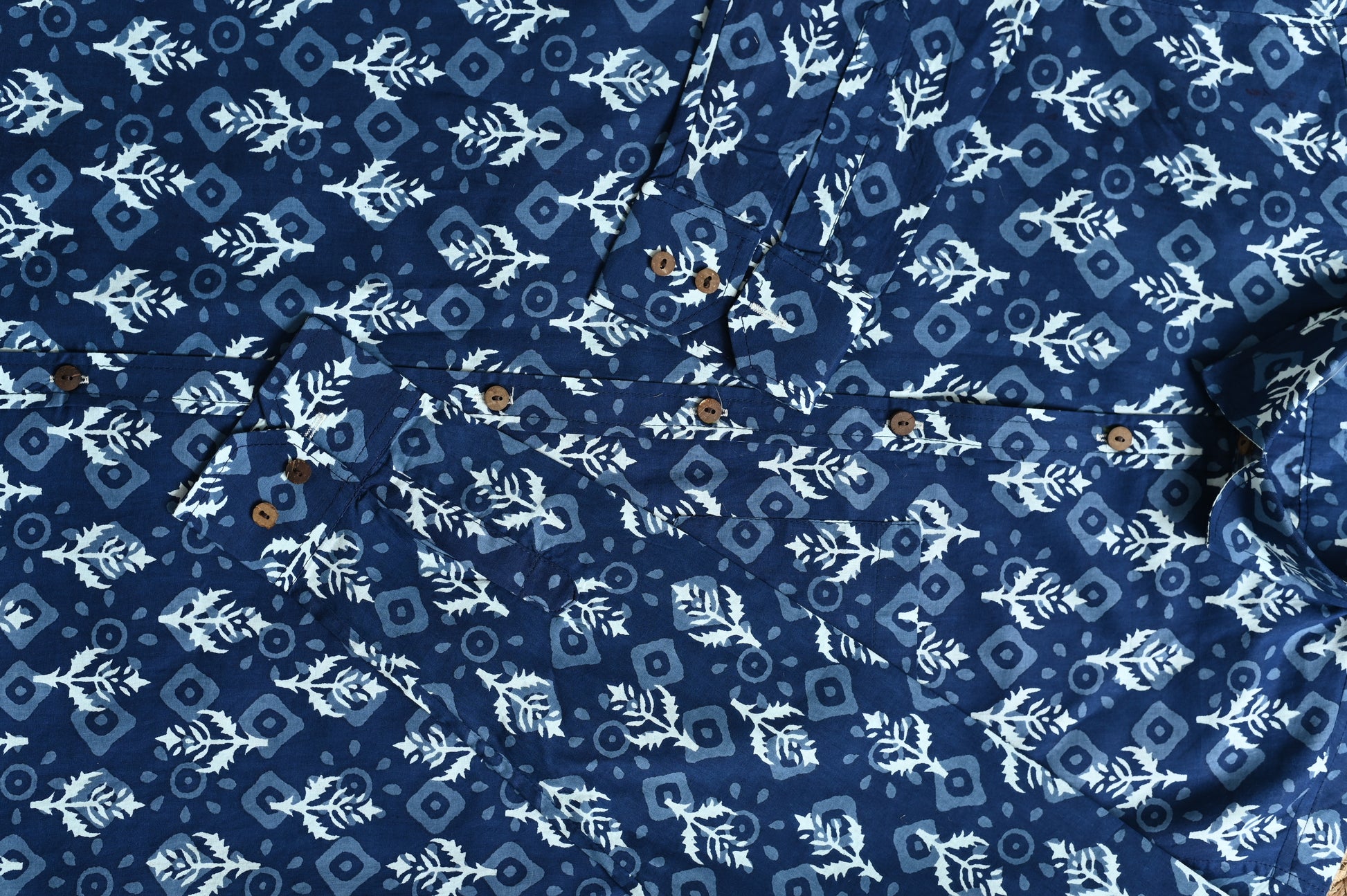 Natural-dyed colours might bleed during the first few washes or rub against the skin & other light-coloured garments. In the artful process of hand block-printing, embroidery work and stitching, variations are likely to come into existence. These irregularities are the hallmark of all handmade products and give each style a unique identity.