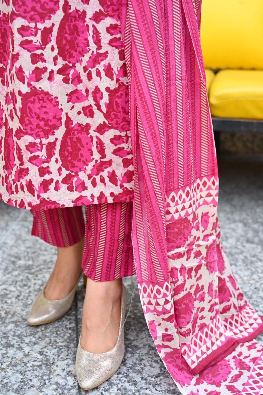 Our top-selling Floral Print Cotton Suit Set! Crafted from pure cotton, this set is ideal for daily wear. Comfortable and stylish, it's a must-have for any fashion-forward individual. Don't miss out - get your set today!