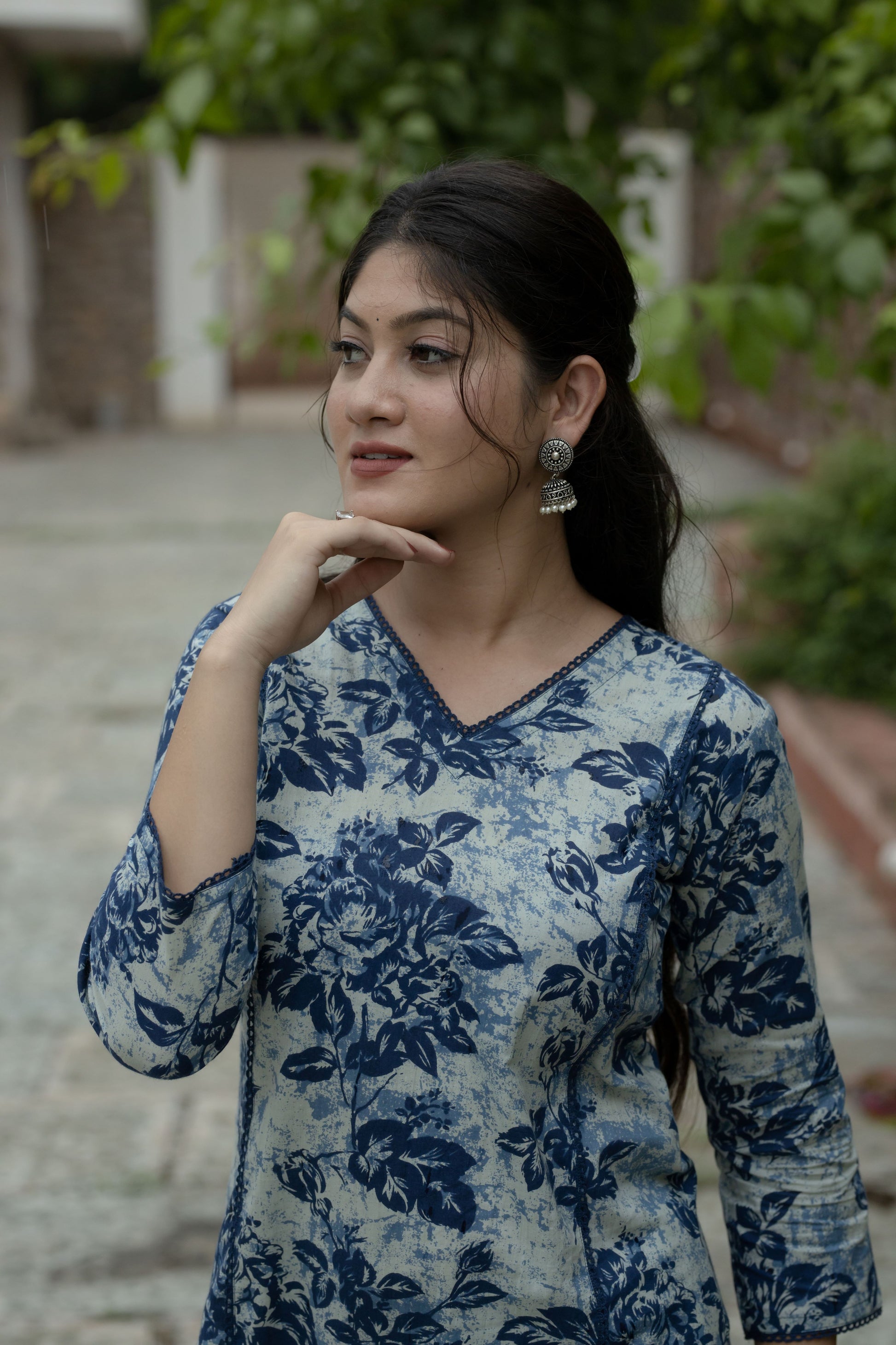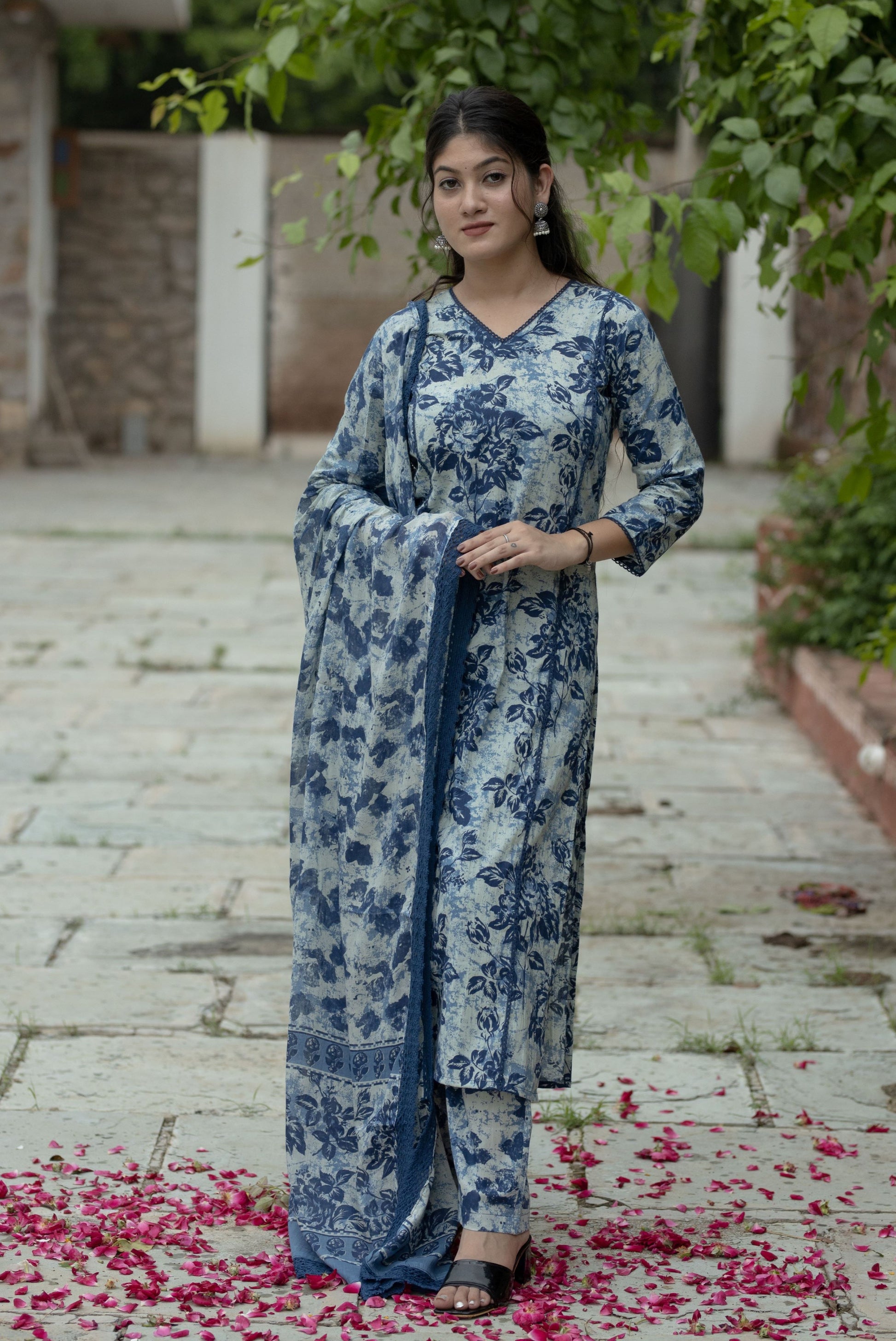 Natural-dyed colours might bleed during the first few washes or rub against the skin & other light-coloured garments. In the artful process of hand block-printing, embroidery work and stitching, variations are likely to come into existence. These irregularities are the hallmark of all handmade products and give each style a unique identity.