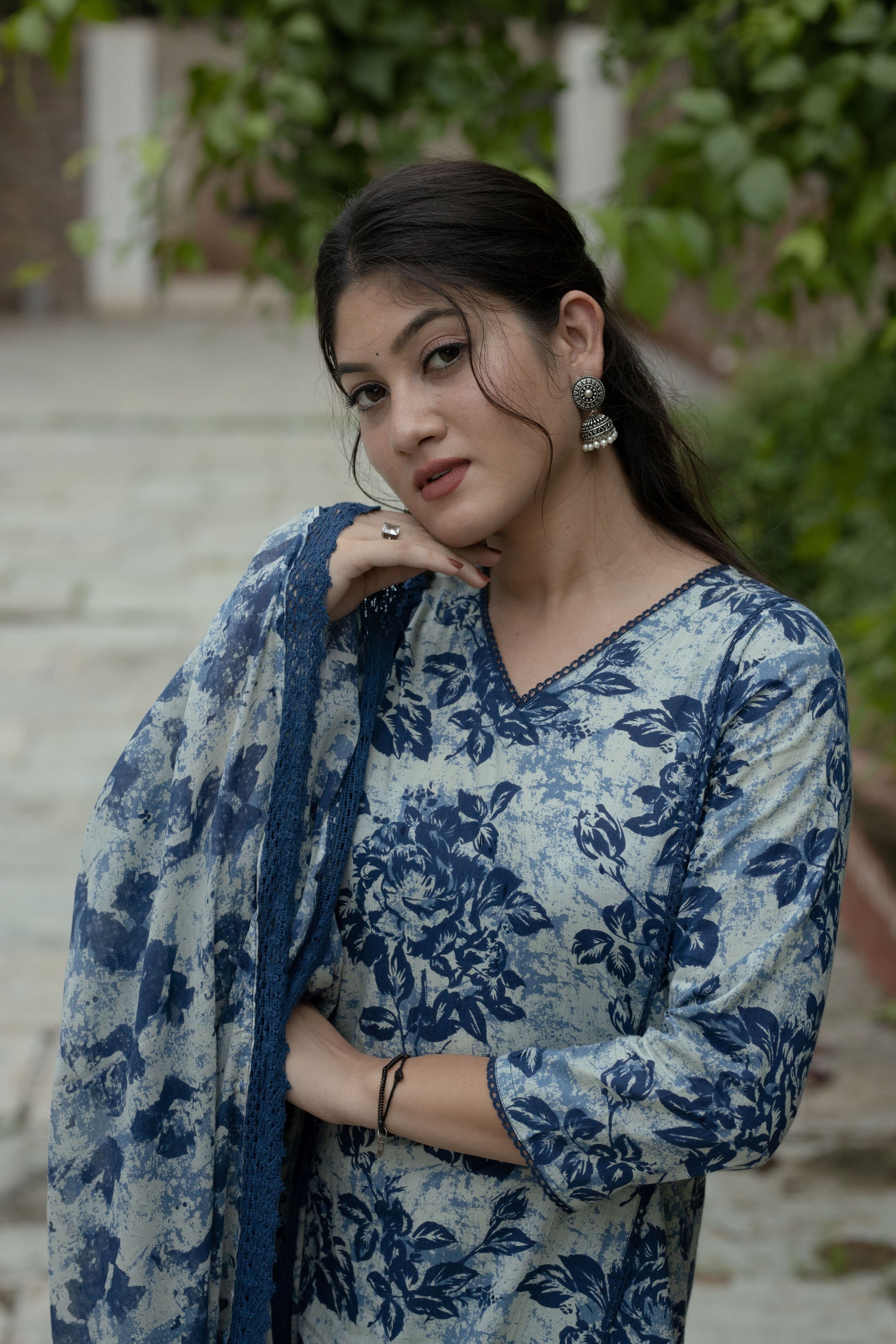 Experience the superior craftsmanship of this luxurious cotton suit, adorned with intricate designer lace details on the Kurta Complete the look with the exquisite Croatia lace detailing on the Dupatta.