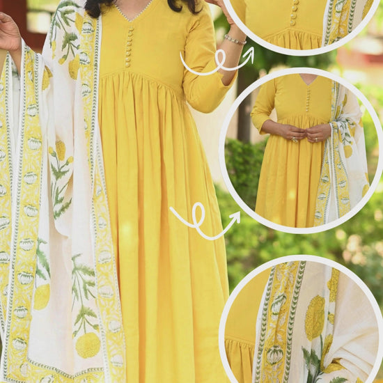 Natural-dyed colours might bleed during the first few washes or rub against the skin & other light-coloured garments. In the artful process of hand block-printing, embroidery work and stitching, variations are likely to come into existence. These irregularities are the hallmark of all handmade products and give each style a unique identity.