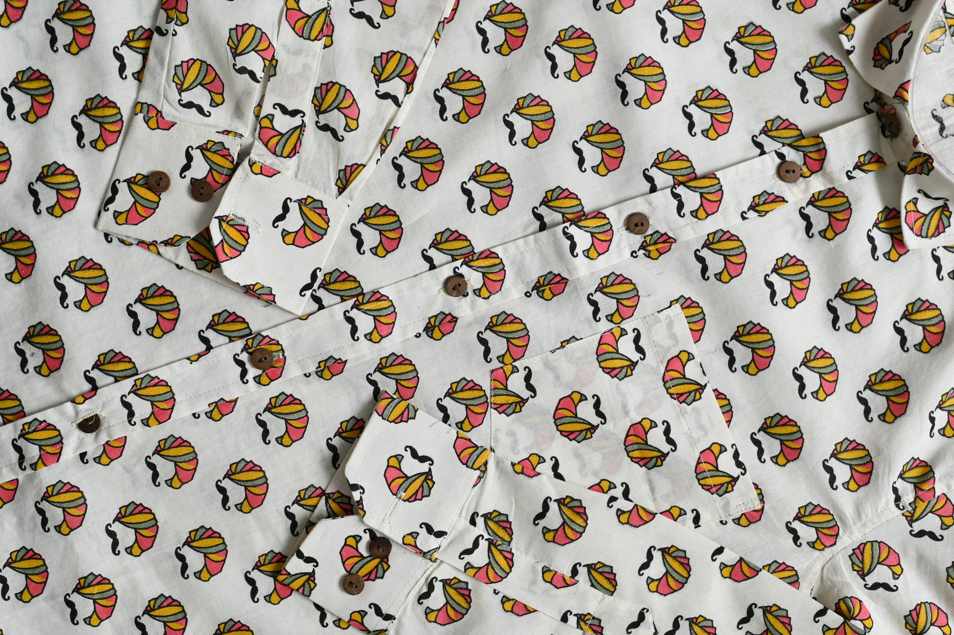 The shirt features an eye-catching, random design pattern, suitable for both everyday wear and special occasions. With its graphic print and simple, basic collar, this shirt is both lightweight and tailored fit, made from high-quality cotton.