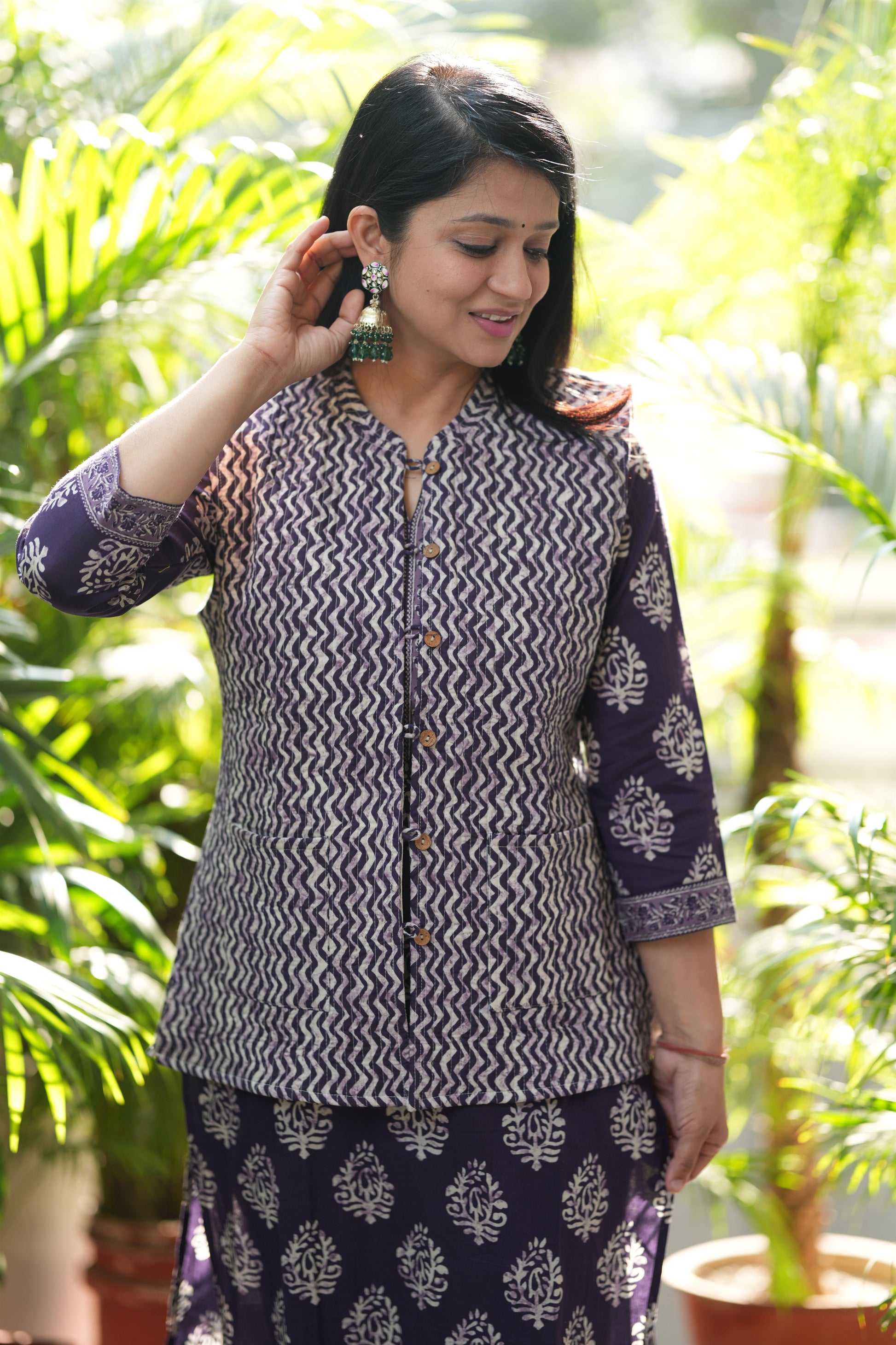 Purple Zig-zag Kurta Pant with Jacket Set