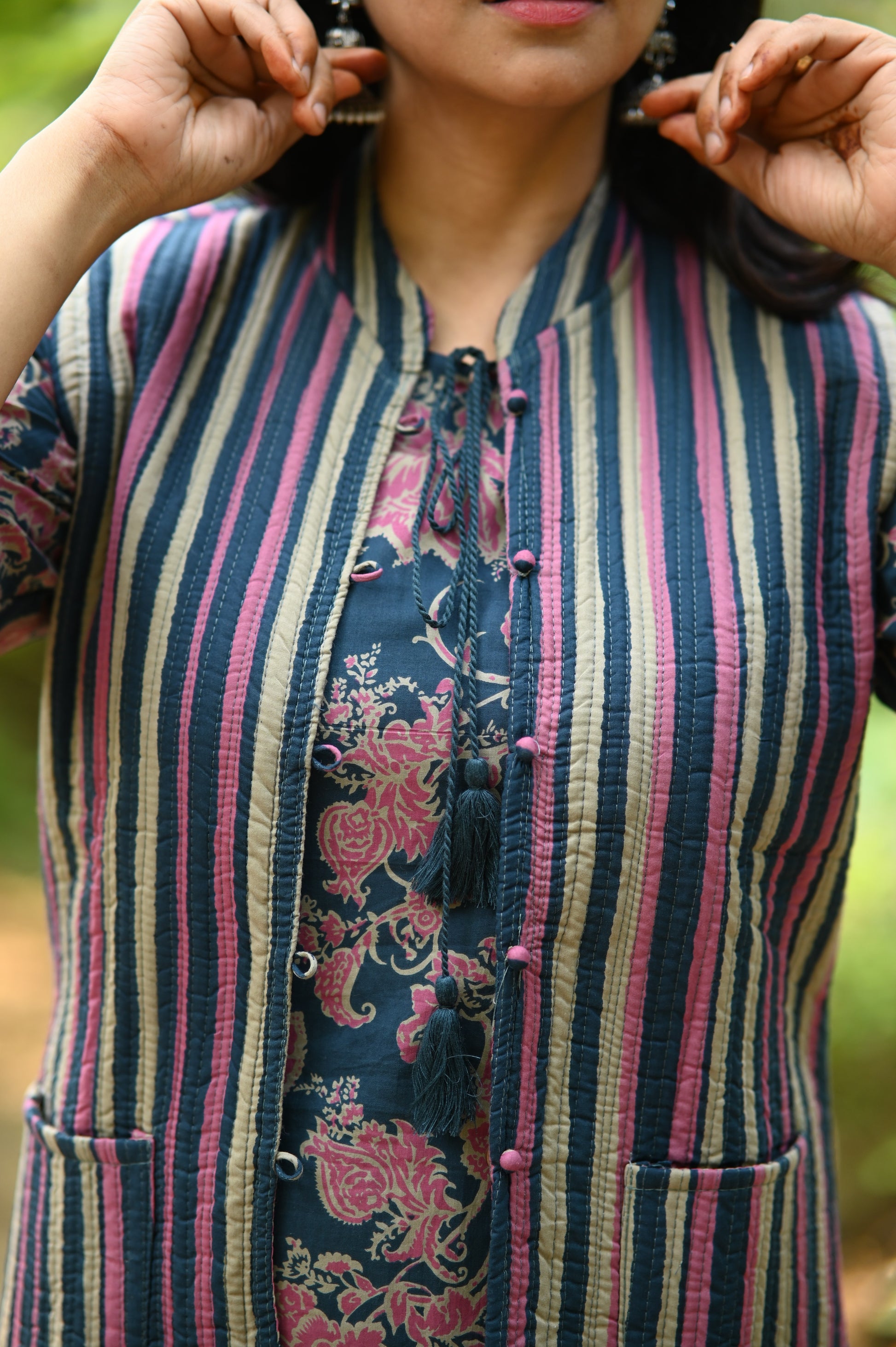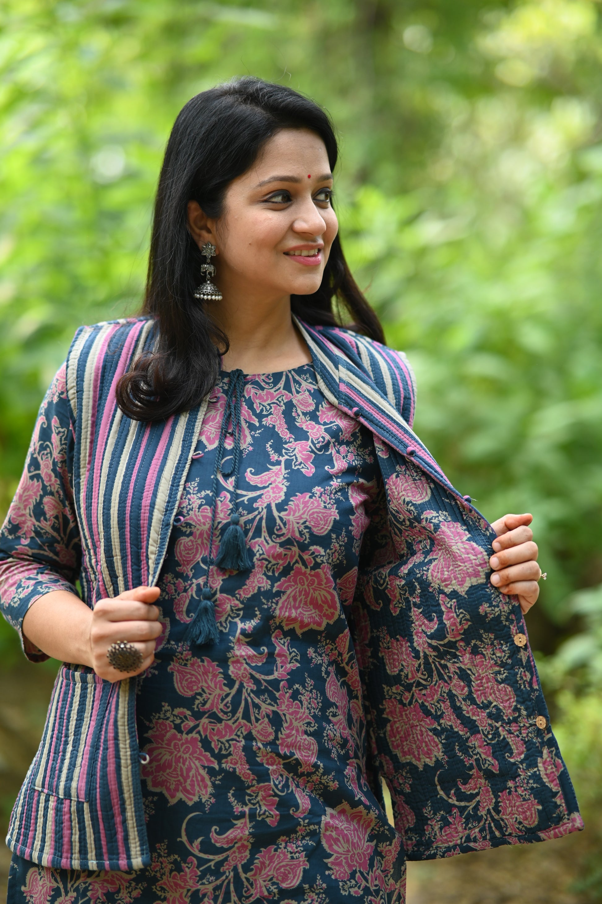 Effortlessly stay warm and stylish with the Reversible Ethnic Jacket. Enjoy the convenience of two pockets for all your essentials, while its quilted design adds a touch of sophistication to any outfit. Plus, its reversible feature gives you the flexibility to switch up your look at a moment's notice.