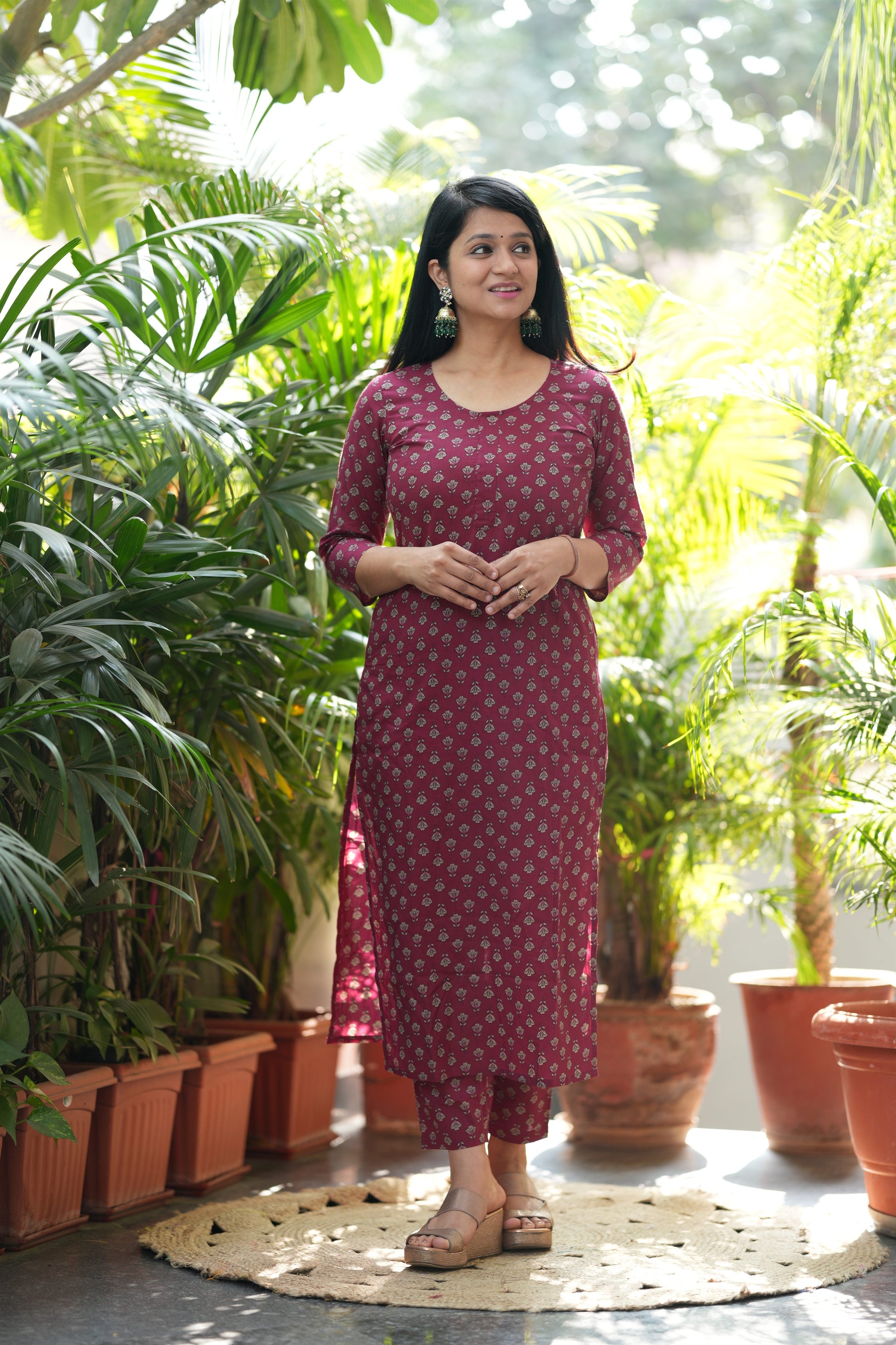 Natural-dyed colours might bleed during the first few washes or rub against the skin & other light-coloured garments. In the artful process of hand block-printing, embroidery work and stitching, variations are likely to come into existence. These irregularities are the hallmark of all handmade products and give each style a unique identity.