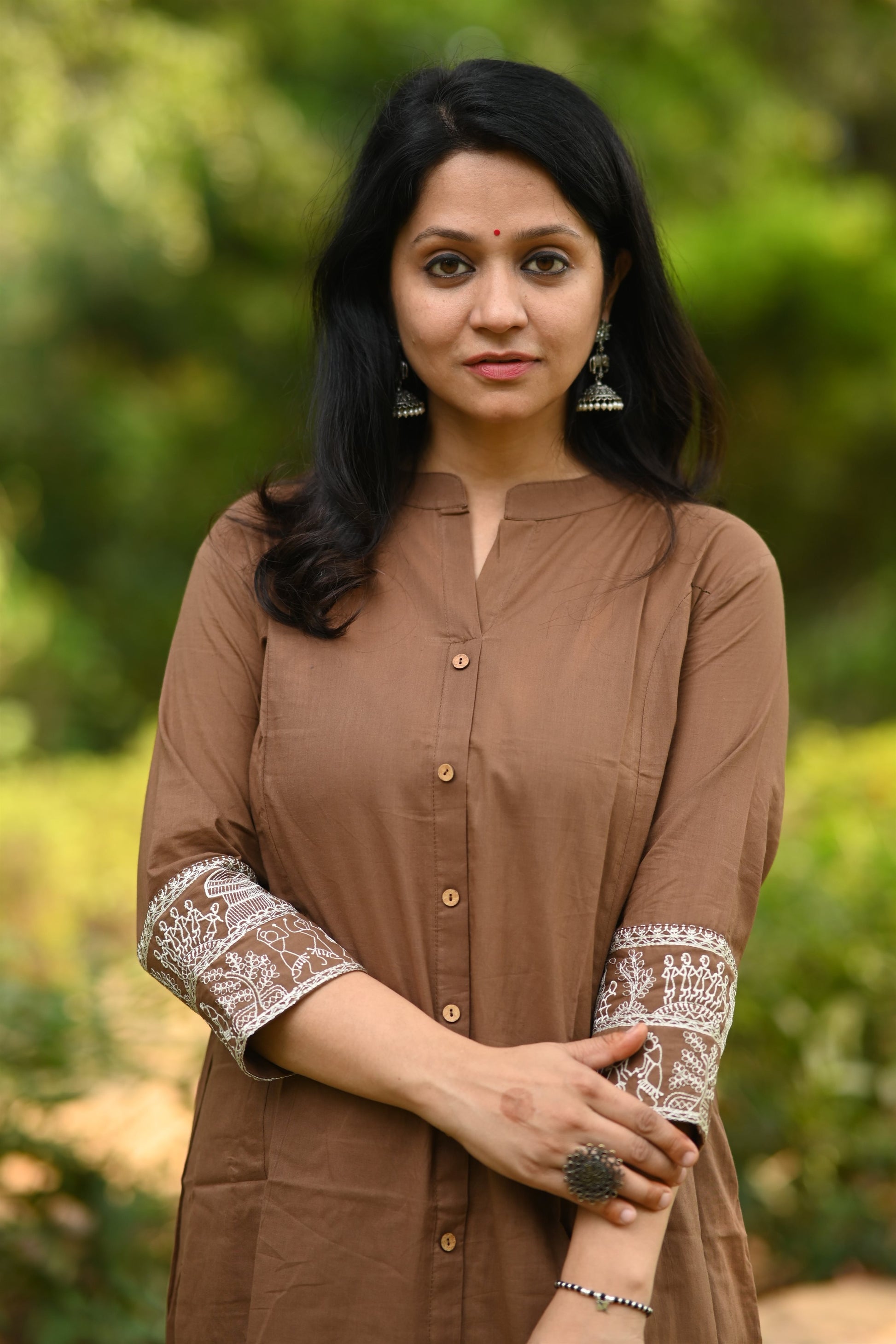 Natural-dyed colours might bleed during the first few washes or rub against the skin & other light-coloured garments. In the artful process of hand block-printing, embroidery work and stitching, variations are likely to come into existence. These irregularities are the hallmark of all handmade products and give each style a unique identity.