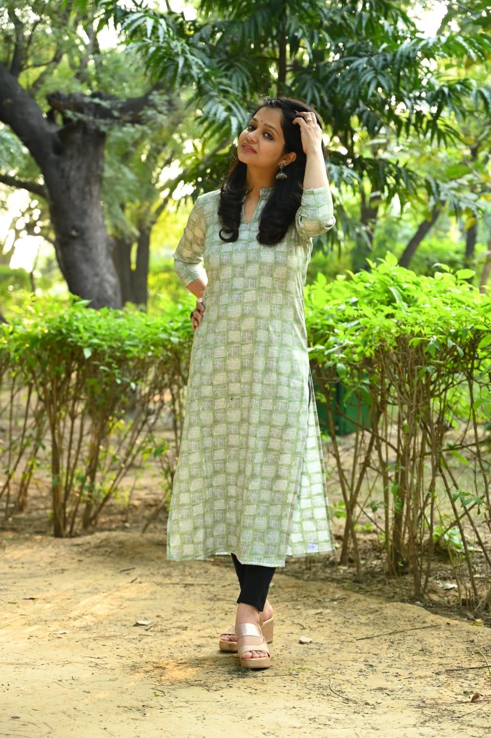Natural-dyed colours might bleed during the first few washes or rub against the skin & other light-coloured garments. In the artful process of hand block-printing, embroidery work and stitching, variations are likely to come into existence. These irregularities are the hallmark of all handmade products and give each style a unique identity.